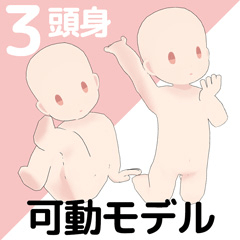 3D drawing figure] three-head SD body model @ agar cat - CLIP