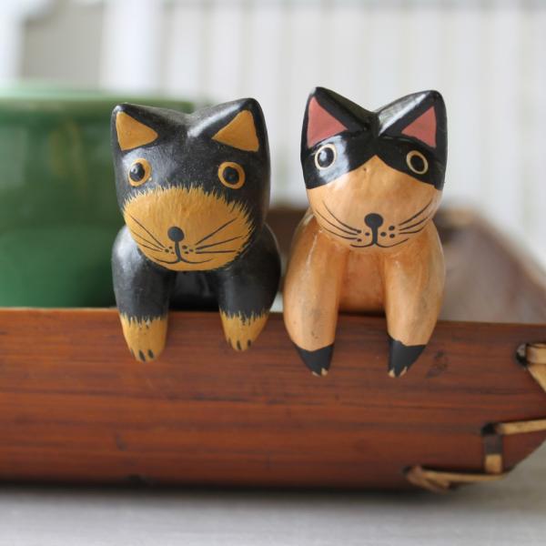 引っ掛けバリ猫(茶色・黒)2匹セット アジアン雑貨 猫置物 木彫り